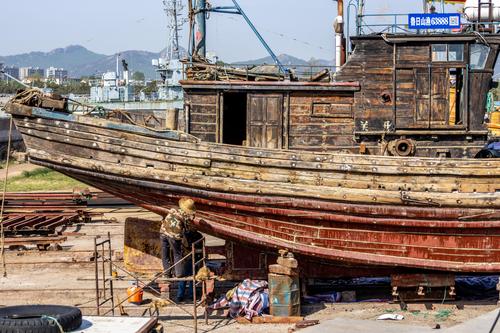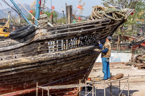 和汽车年检一样,渔船每年也要进行一次全面维修保养,对于渔民们来说,伏季休渔正是渔船上岸维修的最佳时机。眼下,渔民们正趁着休渔期加紧修补网具、修缮渔船,为接下来的开海做好准备。