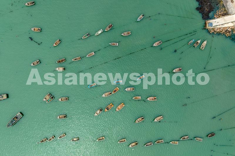 2023年5月3日,山东威海,荣成市成山镇一家码头抛锚停放的休渔渔船。