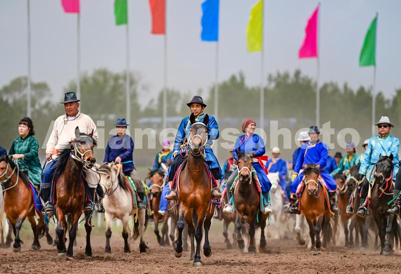 2023年5月10日,牧民骑马参加2023伊金霍洛查干苏鲁克大典512搏克精英大赛。