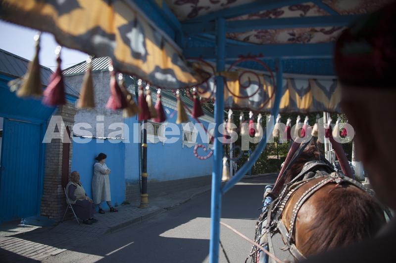 图片说明:2023年5月10日,在位于新疆维吾尔自治区伊犁哈萨克自治州伊宁市的喀赞其民俗街拍摄的镜头。