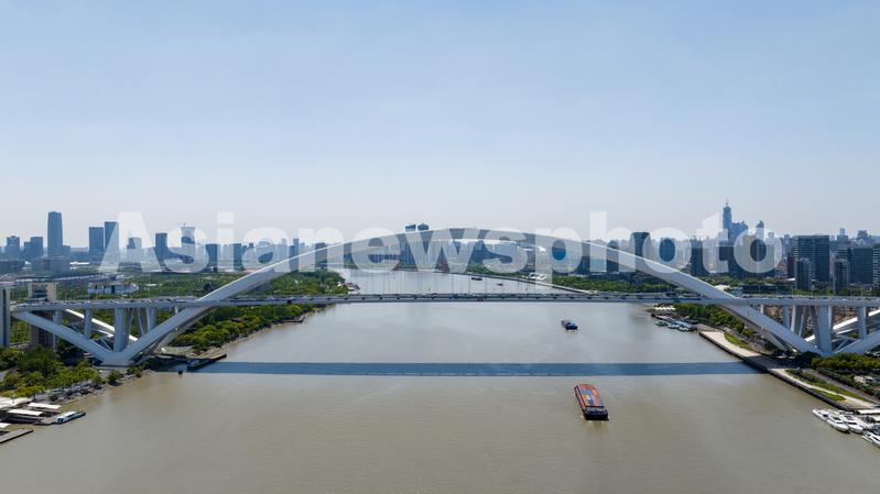 图片说明:2023年5月9日,上海,航拍黄浦江上川流不息的货轮。