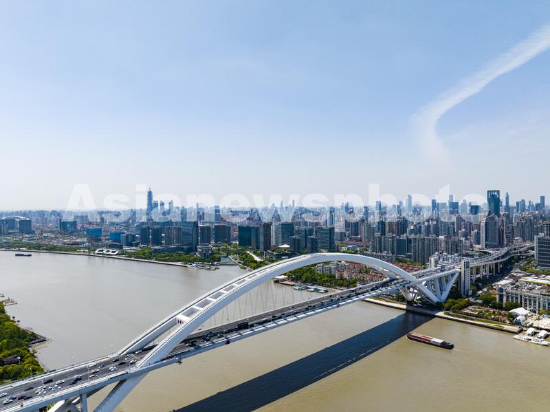图片说明:2023年5月9日,上海,航拍黄浦江上川流不息的货轮。