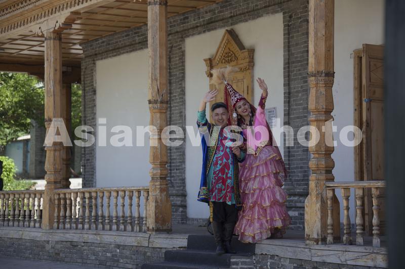 图片说明:2023年5月10日,在位于新疆维吾尔自治区伊犁哈萨克自治州伊宁市的喀赞其民俗街拍摄的镜头。