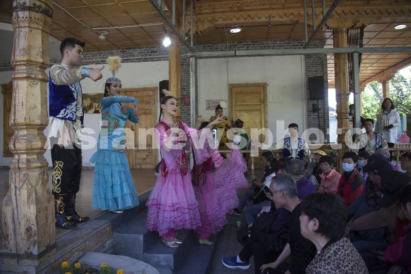 图片说明:2023年5月10日,在位于新疆维吾尔自治区伊犁哈萨克自治州伊宁市的喀赞其民俗街拍摄的镜头。