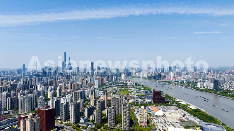 图片说明:2023年5月9日,上海,航拍黄浦江上川流不息的货轮。