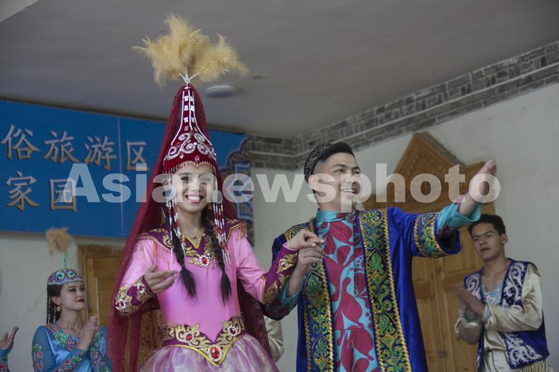 图片说明:2023年5月10日,在位于新疆维吾尔自治区伊犁哈萨克自治州伊宁市的喀赞其民俗街拍摄的镜头。
