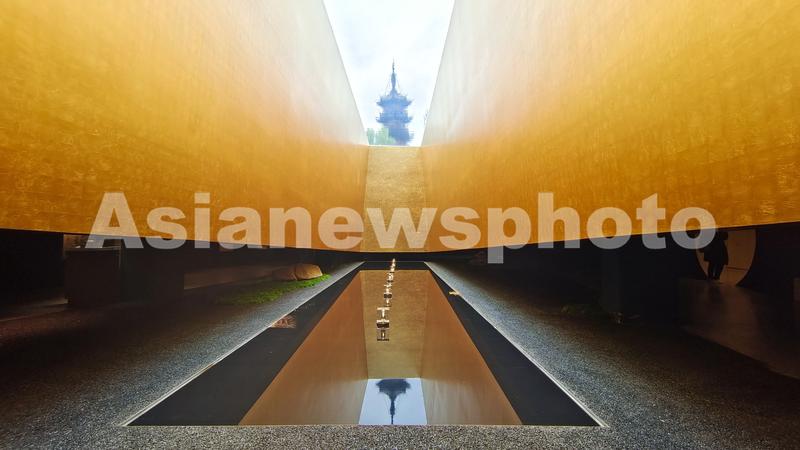 2023年5月11日,上海,龙华历史文化风貌区升级修缮后最受关注的地下“塔影空间”五一后开放预约,市民游客可以在这个集阅读、休闲、艺术展示为一体的空间沉浸式体验中华传统文化与海派风情,隔着水幕仰望魔都保存最完好的宋代千年古塔,在如同时光隧道的阅读区品味藏书,还可以欣赏海派书画及紫砂壶展览。
