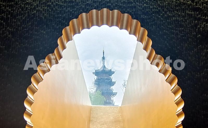 2023年5月11日,上海,龙华历史文化风貌区升级修缮后最受关注的地下“塔影空间”五一后开放预约,市民游客可以在这个集阅读、休闲、艺术展示为一体的空间沉浸式体验中华传统文化与海派风情,隔着水幕仰望魔都保存最完好的宋代千年古塔,在如同时光隧道的阅读区品味藏书,还可以欣赏海派书画及紫砂壶展览。