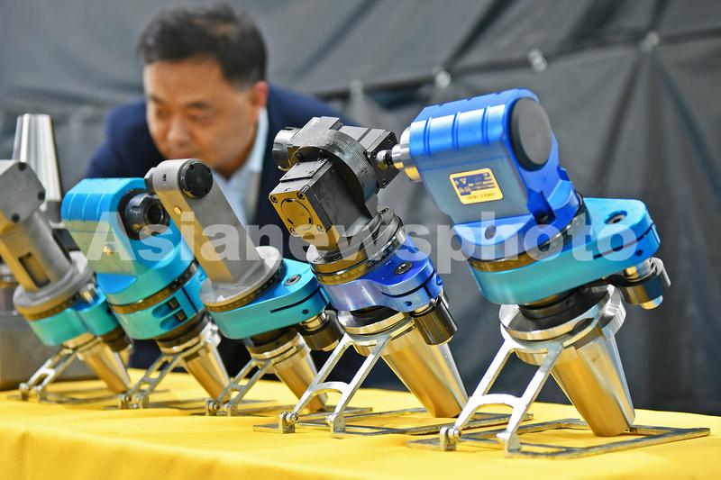 2023年5月11日,参观者在第二十一届烟台国际装备制造业博览会上了解系列角度头产品。