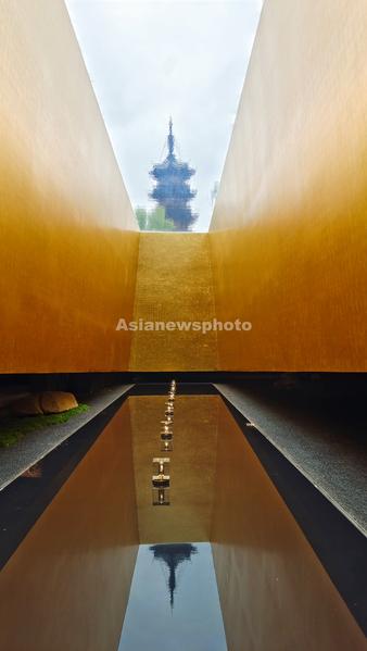 2023年5月11日,上海,龙华历史文化风貌区升级修缮后最受关注的地下“塔影空间”五一后开放预约,市民游客可以在这个集阅读、休闲、艺术展示为一体的空间沉浸式体验中华传统文化与海派风情,隔着水幕仰望魔都保存最完好的宋代千年古塔,在如同时光隧道的阅读区品味藏书,还可以欣赏海派书画及紫砂壶展览。