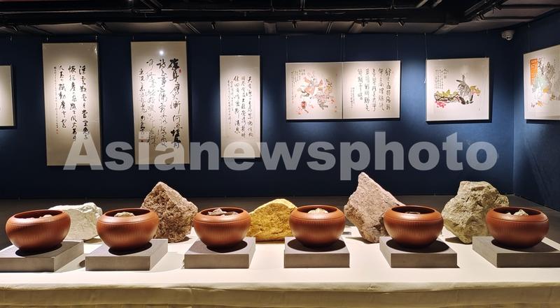 2023年5月11日,上海,龙华历史文化风貌区的地下“塔影空间”内,一场“壶兔有福”海派书画及紫砂壶联合艺术展览正在举办。