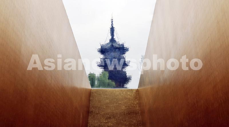 2023年5月11日,上海,龙华历史文化风貌区的地下“塔影空间”内,最吸引游客的就是隔着水幕仰望魔都保存最完好的宋代千年古塔龙华塔,全新视角感受古人“秋江塔影”的意境。