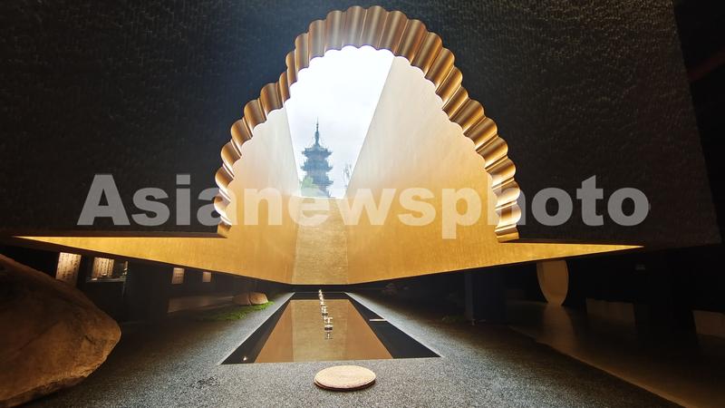 2023年5月11日,上海,龙华历史文化风貌区升级修缮后最受关注的地下“塔影空间”五一后开放预约,市民游客可以在这个集阅读、休闲、艺术展示为一体的空间沉浸式体验中华传统文化与海派风情,隔着水幕仰望魔都保存最完好的宋代千年古塔,在如同时光隧道的阅读区品味藏书,还可以欣赏海派书画及紫砂壶展览。