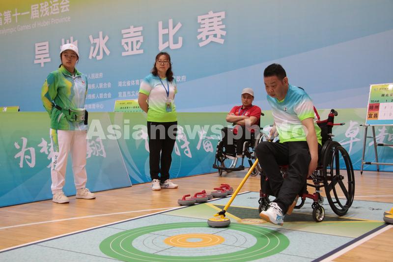 2023年5月12日,湖北宜昌奥体中心,湖北省第十一届残运会旱地冰壶圆满落幕。宜昌市代表队肢体组以五轮全胜的成绩获得冠军、智力组以七轮全胜的成绩获得冠军。省残运会首次设立该比赛项目,共有20只代表队参加肢体组、智力组、和听力组角逐。