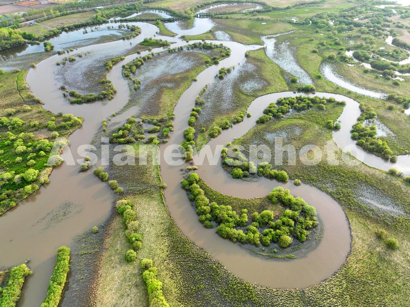 2023年5月14日,黑龙江省饶河县乌苏里江国家湿地公园夏日美景如画。
