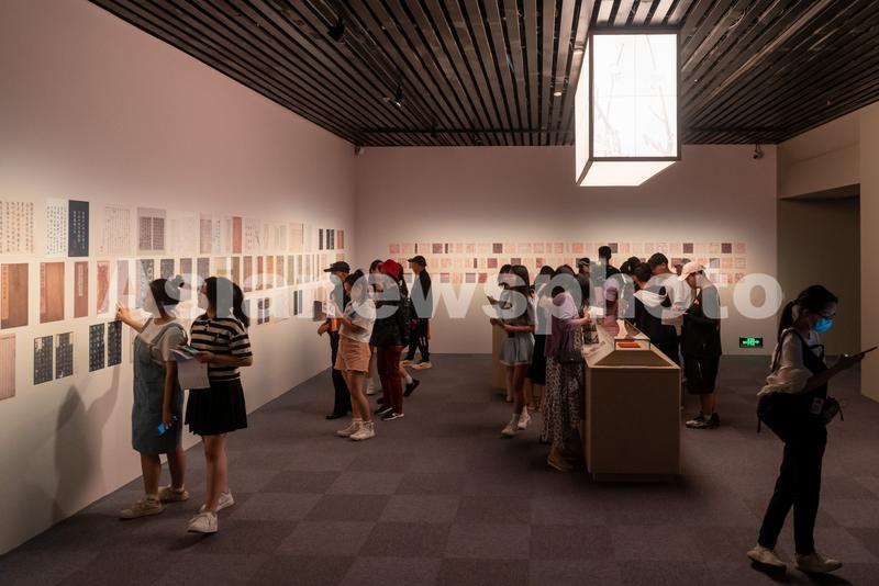 2023年5月16日,上海博物馆内,众多观众正在参观宋元古籍展,展览设置的互动签章区吸引不少参观者拍照打卡。