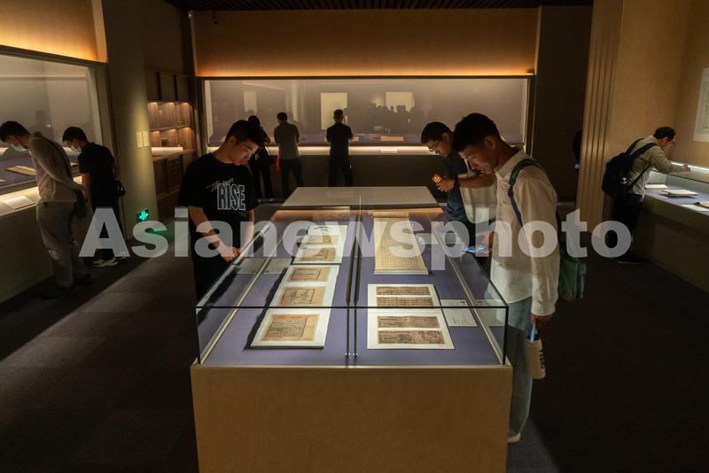 2023年5月16日,上海博物馆内,众多观众正在参观宋元古籍展,展览设置的互动签章区吸引不少参观者拍照打卡。