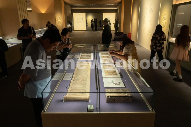 2023年5月16日,上海博物馆内,众多观众正在参观宋元古籍展,展览设置的互动签章区吸引不少参观者拍照打卡。