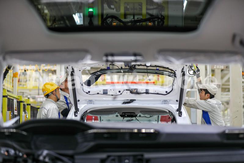 2023年5月15日,在四川省宜宾市三江新区凯翼汽车智慧总装车间,工人正在生产线上忙碌,满足国内外的订单需求。
