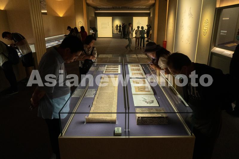 2023年5月16日,上海博物馆内,众多观众正在参观宋元古籍展,展览设置的互动签章区吸引不少参观者拍照打卡。