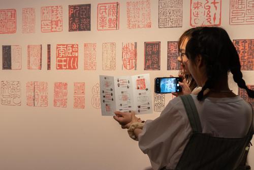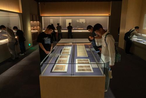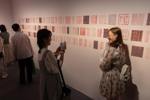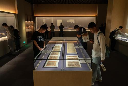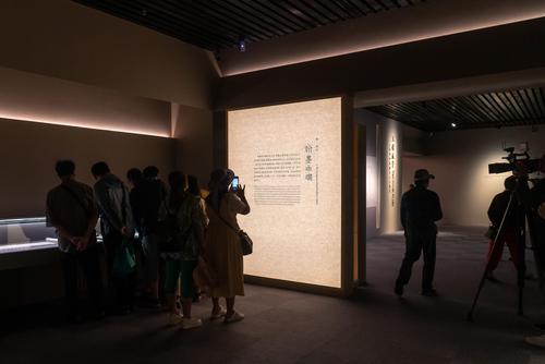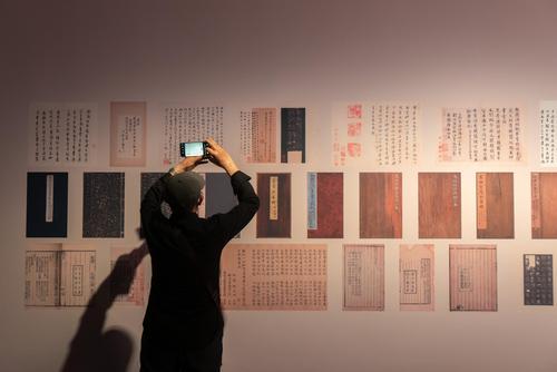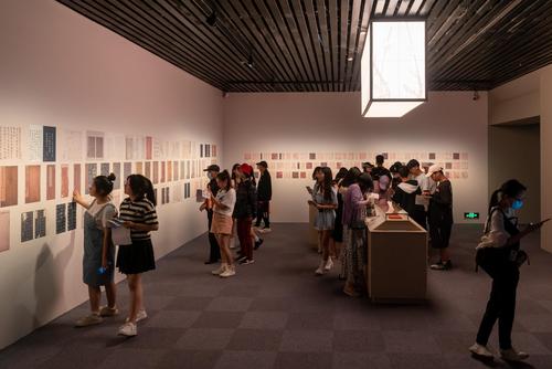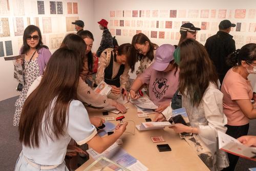 2023年5月16日,上海博物馆内,众多观众正在参观宋元古籍展,展览设置的互动签章区吸引不少参观者拍照打卡。