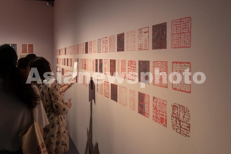 2023年5月16日,上海博物馆内,众多观众正在参观宋元古籍展,展览设置的互动签章区吸引不少参观者拍照打卡。