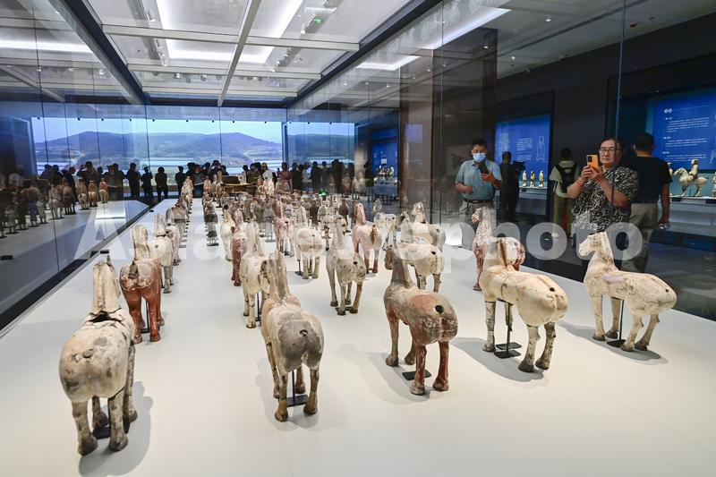 2023年5月17日,游客在山东省青州市博物馆新馆参观拍摄文物展品。