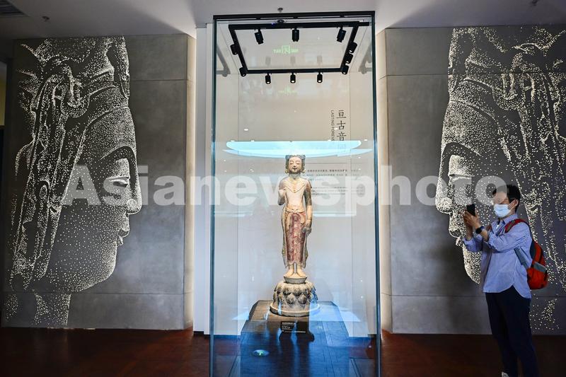 2023年5月17日,游客在山东省青州市博物馆新馆参观拍摄文物展品。