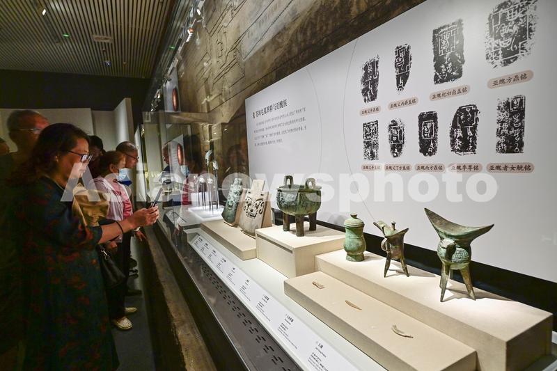 2023年5月17日,游客在山东省青州市博物馆新馆参观拍摄文物展品。