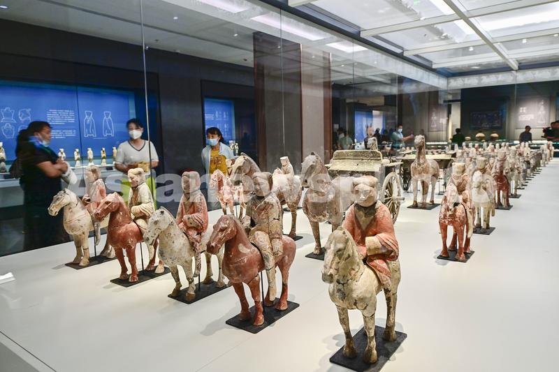 2023年5月17日,许多游客来到山东省青州市博物馆新馆,参观展品,学习文物知识,感受历史文化魅力,迎接5月18日国际博物馆日到来。感受历史文化魅力。