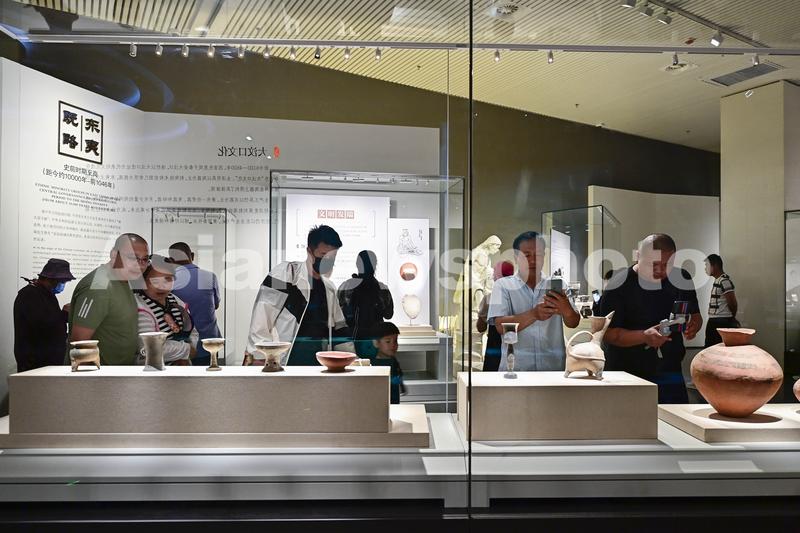 2023年5月17日,游客在山东省青州市博物馆新馆参观拍摄文物展品。