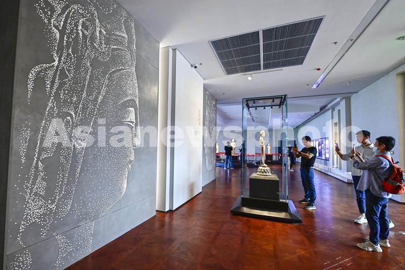 2023年5月17日,游客在山东省青州市博物馆新馆参观拍摄文物展品。