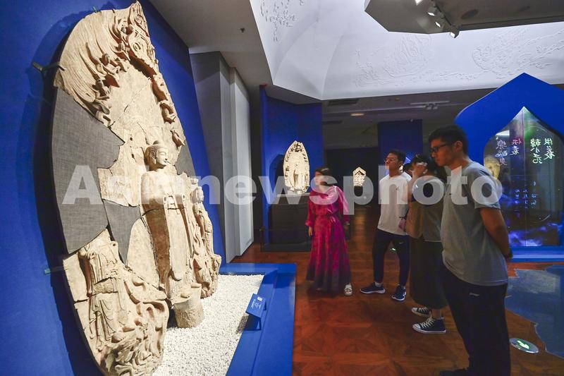 2023年5月17日,游客在山东省青州市博物馆新馆参观文物展品。