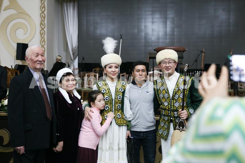 2月15日,哈萨克斯坦国立音乐学院的学生在演出后和家人合影。