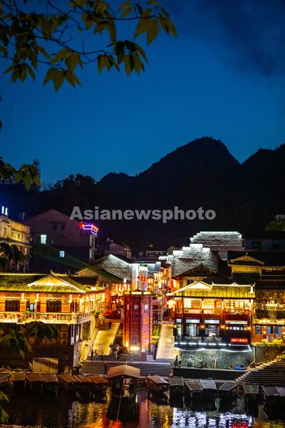 图片说明:2023年5月16日,在重庆市秀山土家族苗族自治县洪安古镇边城景区拍摄的洪茶渡口夜景。