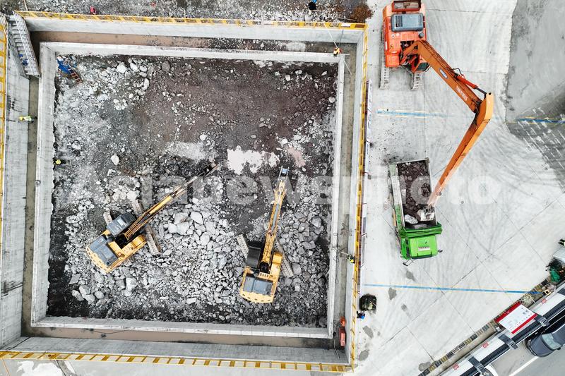 2023年5月18日,世界最长高铁海底隧道——金塘海底隧道金塘岛侧竖井施工现场。