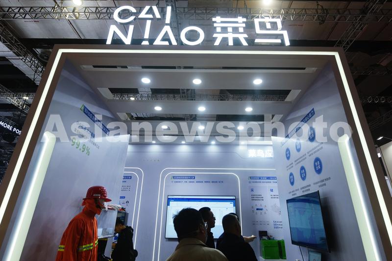 2023年5月8日,在上海举办的2023长三角国际应急救援博览会上拍摄到的菜鸟展台。