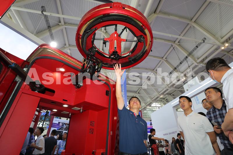 第七届世界智能大会智能科技展上,圣智能展台 展出的全新一代固定式全自动机场。