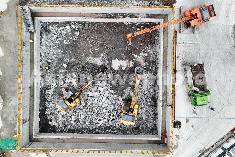 2023年5月18日,世界最长高铁海底隧道——金塘海底隧道金塘岛侧竖井施工现场。