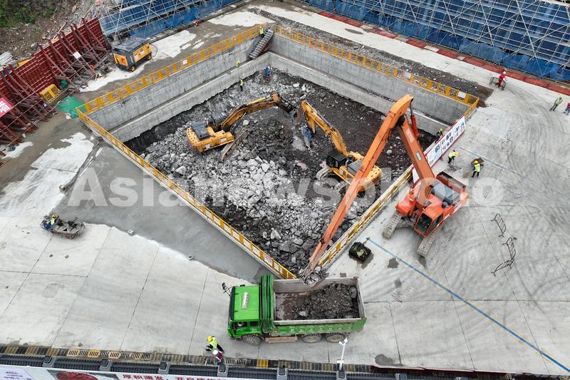 2023年5月18日,世界最长高铁海底隧道——金塘海底隧道金塘岛侧竖井施工现场。