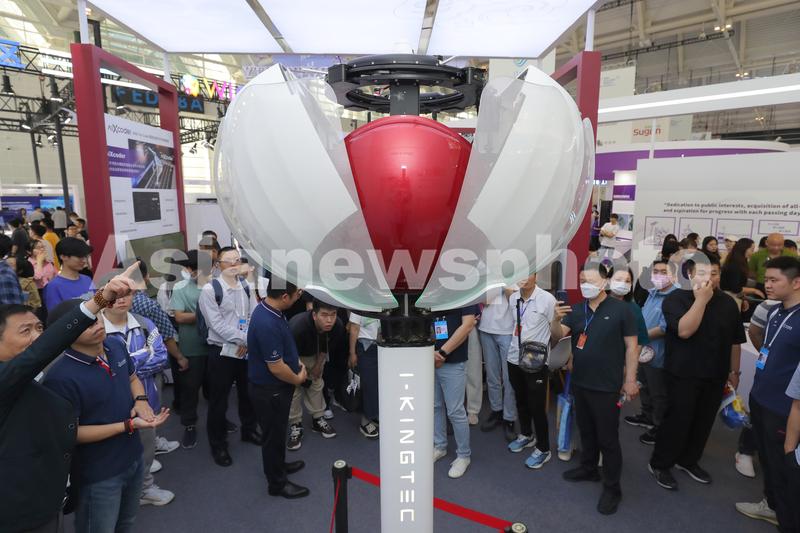 第七届世界智能大会智能科技展上,圣智能展台 展出的宝莲灯固定式全自动机场。