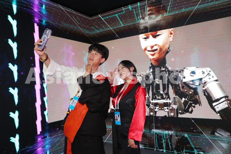 观众在第七届世界智能大会智能科技展现场“打卡”