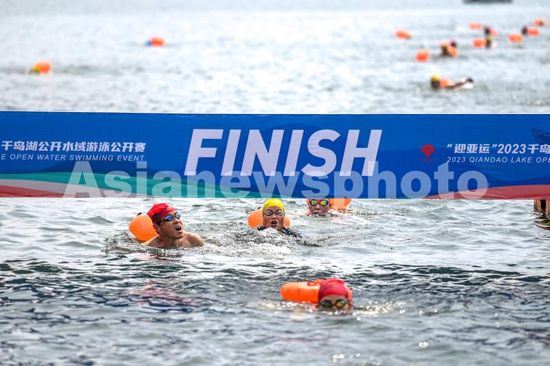2023年5月21日,浙江省杭州市淳安县千岛湖镇城中湖水域,“迎亚运”2023年千岛湖公开水域游泳公开赛开赛,吸引全国171支游泳队伍的3500余名选手参赛。