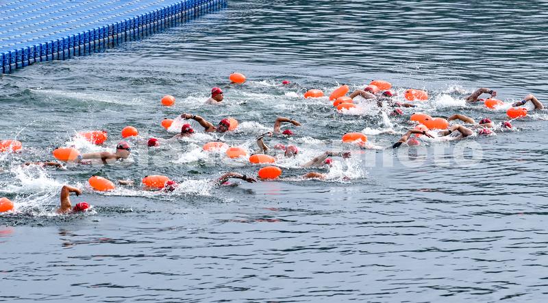 2023年5月21日,浙江省杭州市淳安县千岛湖镇城中湖水域,“迎亚运”2023年千岛湖公开水域游泳公开赛开赛,吸引全国171支游泳队伍的3500余名选手参赛。