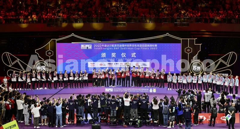 2023年5月21日,在江苏苏州举行的2023年苏迪曼杯世界羽毛球混合团体锦标赛决赛中,中国队以3比0战胜韩国队,夺得冠军。
