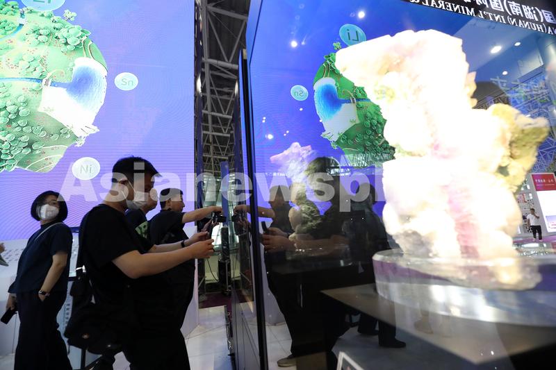 图片说明:5月19日,观众在第十一届中国(湖南)国际矿物宝石博览会上参观。