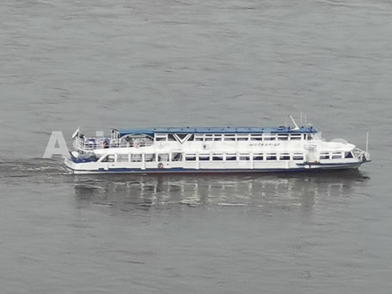图片说明:2023年5月19日,俄罗斯布拉戈维申斯克市莫斯科82号旅游船满载游客在中俄界江黑龙江游览观光。