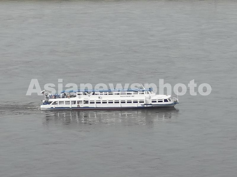 图片说明:2023年5月19日,俄罗斯布拉戈维申斯克市莫斯科82号旅游船满载游客在中俄界江黑龙江游览观光。