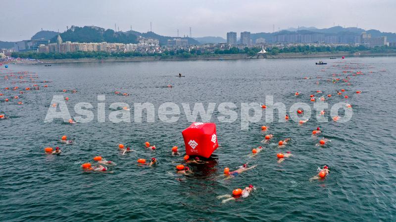 2023年5月21日,浙江省杭州市淳安县千岛湖镇城中湖水域,“迎亚运”2023年千岛湖公开水域游泳公开赛开赛,吸引全国171支游泳队伍的3500余名选手参赛。