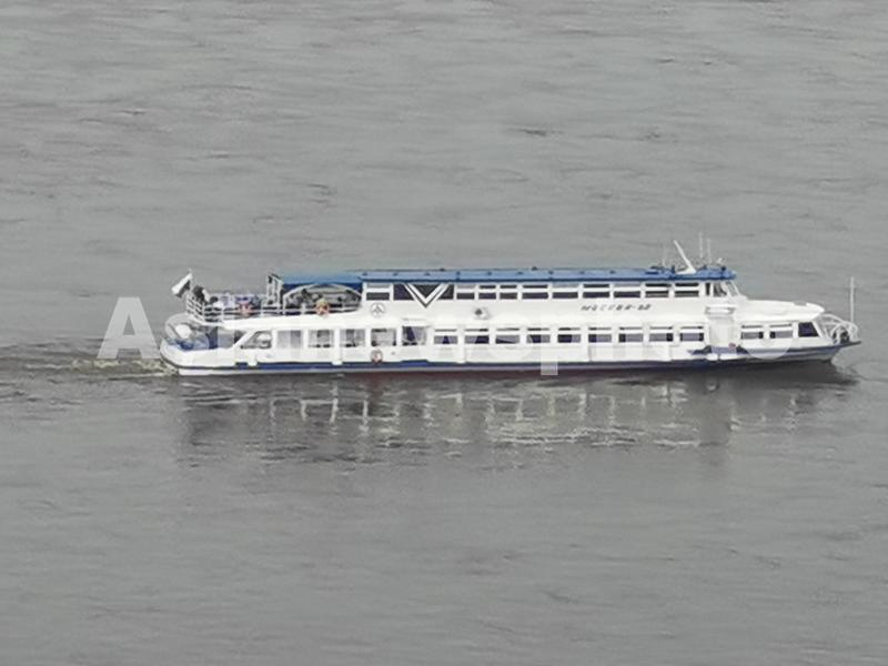 图片说明:2023年5月19日,俄罗斯布拉戈维申斯克市莫斯科82号旅游船满载游客在中俄界江黑龙江游览观光。